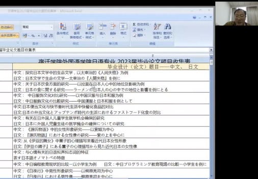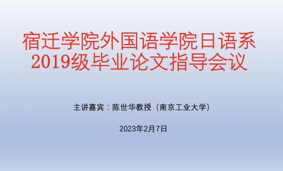 外国语学院日语系2019级毕业论文指导会议,于2023年2月7日下午在线上召开,本次会议特别邀请南京工业大学外国语言文学学院院长陈世华教授担任主讲嘉宾,为日语系2019级全体学生进行了论文指导。我院副院长沈刚出席会议并致辞,日语系2019级全体学生及教师共聚云端,参加了会议。