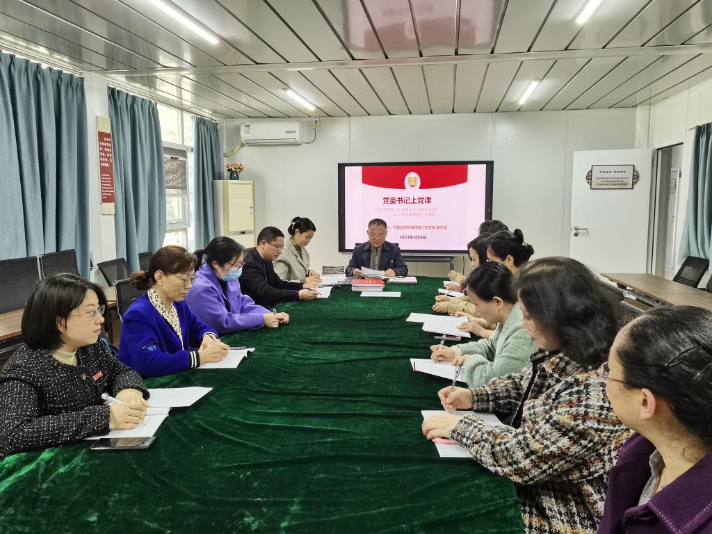 2023年3月8日,外国语学院党委书记管志强同志在8108会议室对教师第二党支部党员以《学习党的二十大报告精神--加强理想信念教育》为题进行了专题授课。