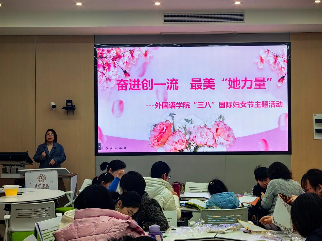 芳菲三月春意浓、巾帼如歌竞芳华。为庆祝第114个“三八”国际妇女节,学习中国文化匠人匠心精神,进一步凝聚女教工拼搏奋进创一流的“她力量”,2024年3月10日,外国语学院开展了“奋进创一流 最美她力量”主题活动。