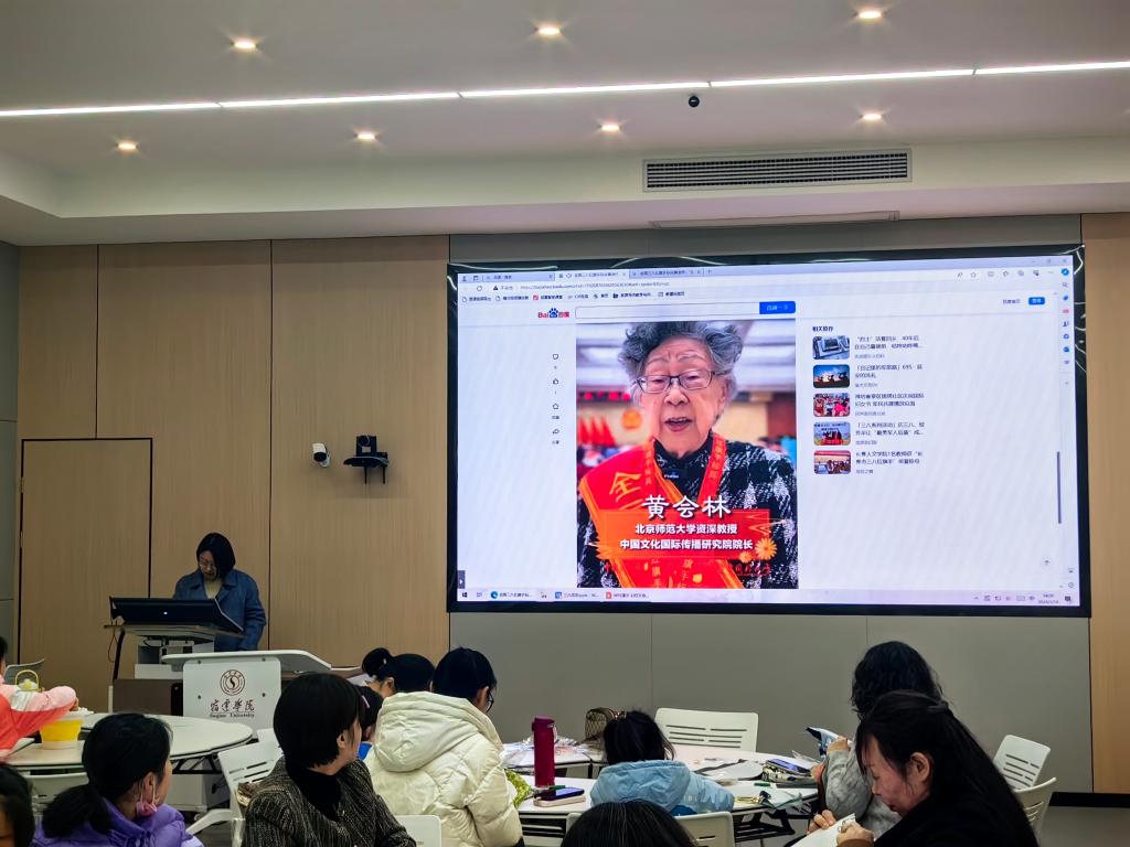 激励“她”力量。大家集中观看全国三八红旗手标兵、最美巾帼奋斗者黄会林的先进事迹,她90岁高龄耕耘三尺讲坛匠心育人的“奋斗之美”为大家树立了榜样力量。