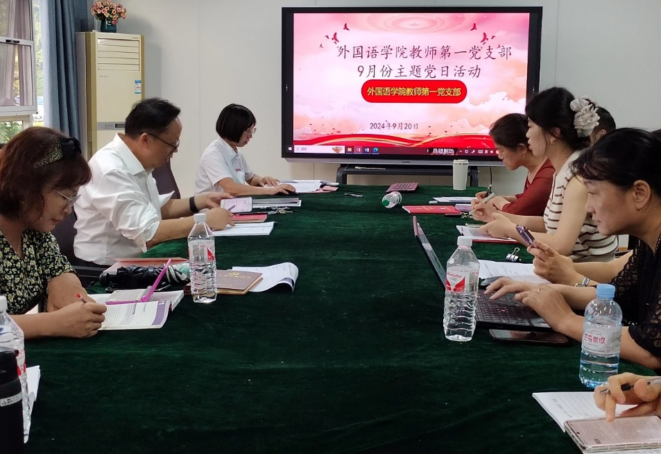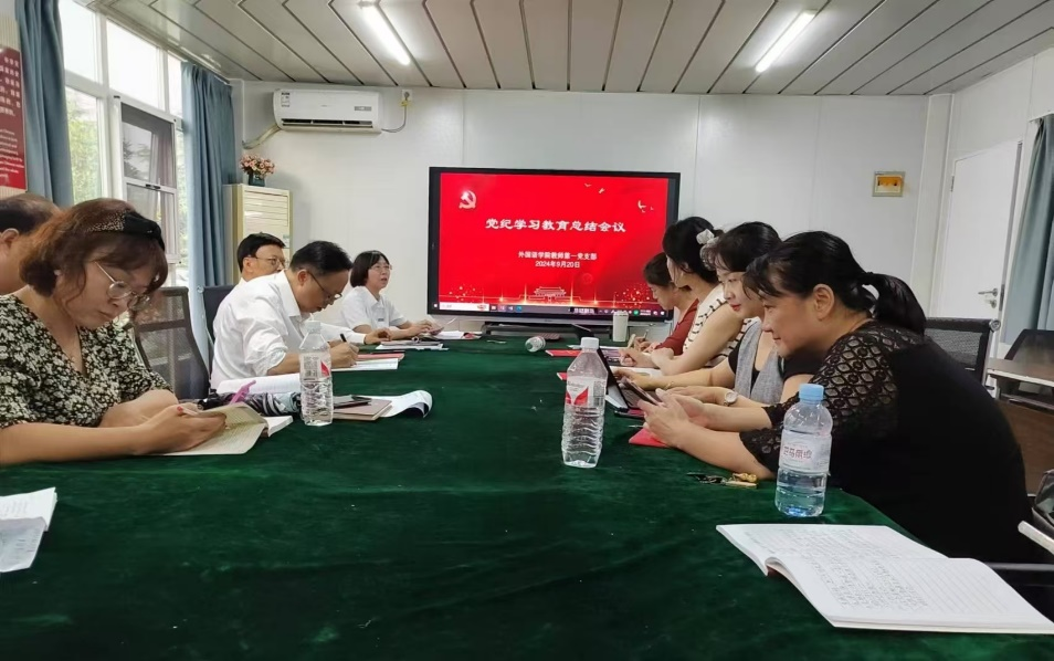 2024年9月20日下午,外国语学院教师第一党支部在8108举行了9月份“主题党日”活动,同时对支部党纪学习教育进行总结。
