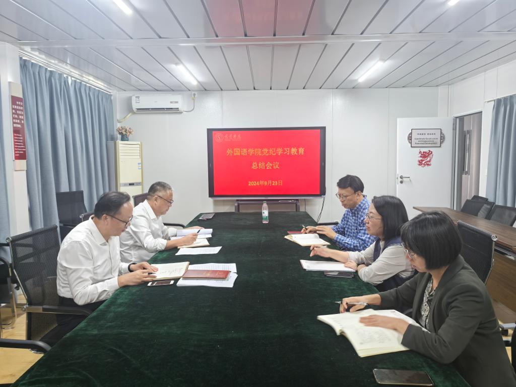 9月23日,外国语学院党委召开党纪学习教育总结会,党委书记管志强主持会议并讲话,学院全体领导班子参加会议。