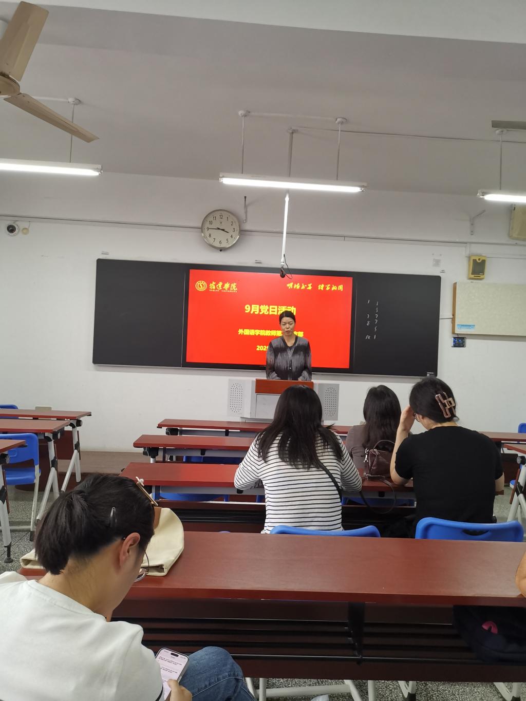 9月17日15:30,外国语学院教师第二党支部在1206教室开展主题党日活动,全体党员参加。