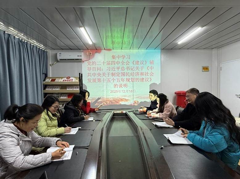随后,支部副书记刘彬领学党的二十届四中全会《建议》辅导百问中习近平总书记关于《中共中央关于制定国民经济和社会发展第十五个五年规划的建议》的说明,以及《中国共产党党员这样自觉规范网络行为》相关内容。领学过程中,刘彬结合外国语学院工作实际,重点强调党员教师要发挥示范引领作用,在网络空间传播正能量,在教育教学中引导学生树立正确的网络观,将“十五五”规划中关于教育、科技、人才一体化发展的要求融入课程思政、学科竞赛、国际交流等工作中,不断完善科技创新体制机制。