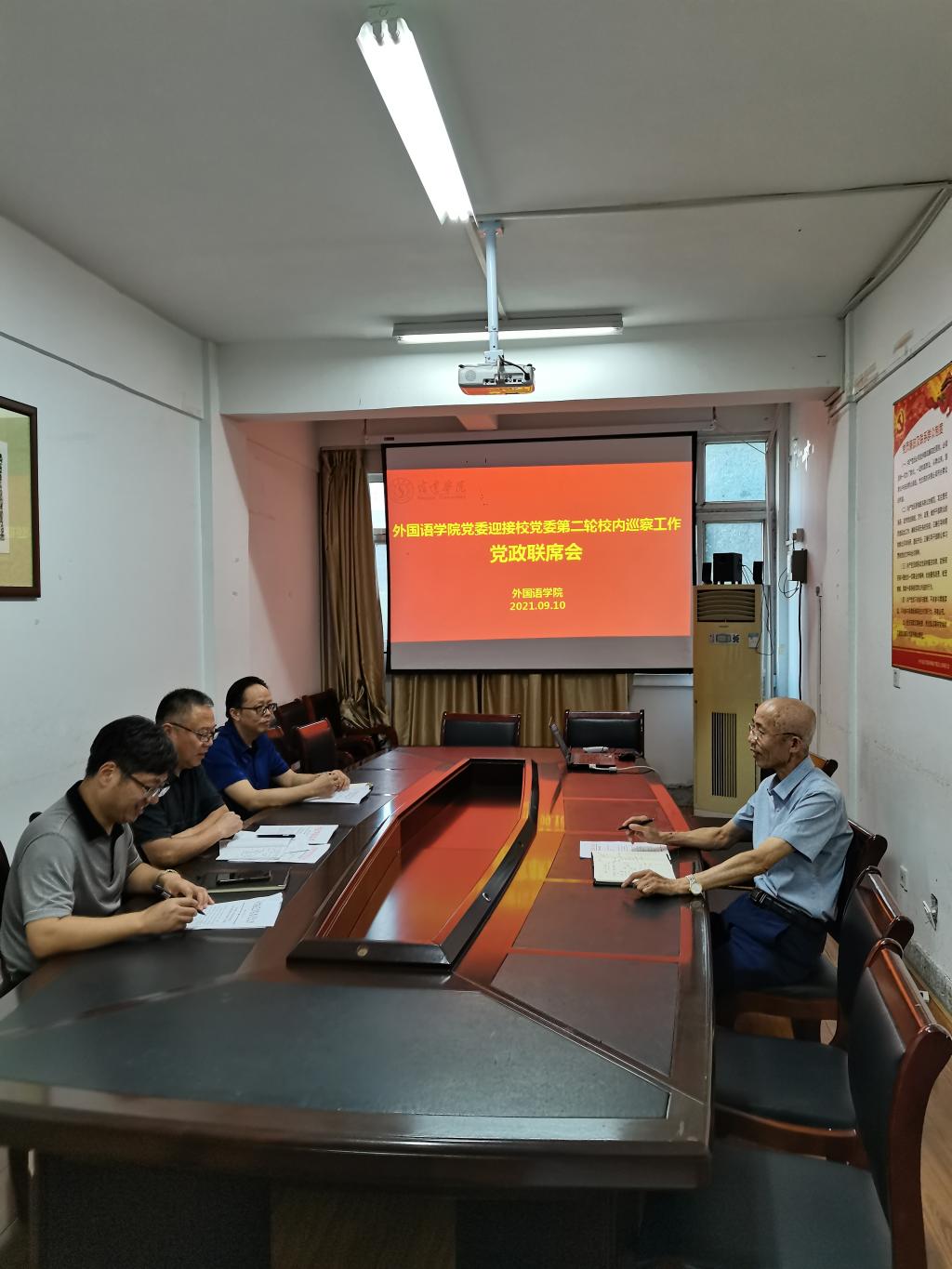 2021年9月09日,校党委发布了《中共宿迁学院委员会第二轮校内巡察工作实施方案》,外国语学院党政高度重视,于9月10日下午14:30在学院210会议室召开了“迎接校党委第二轮校内巡察工作”党政联席会。会上通过了《迎巡工作实施方案》和相应的组织架构。最后书记、院长要求班子成员加强思想认识,提高政治站位,以高度的责任感、使命感迎接校党委第二轮校内巡察工作。
