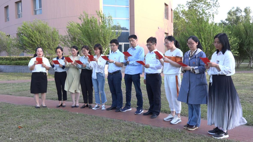 师生党员运用中英日三种语言诵读党史金句,热烈真挚的诵读声音,生动彰显外国语学院的党史学习特色,感染着在场的每一位党员,激发出强烈的爱国爱党情怀。