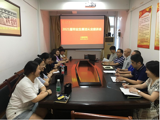 为了贯彻落实教育部《关于在大中小学全面开展廉洁教育的意见》精神,推进惩治和预防腐败体系建设,引导大学生树立报效祖国、服务人民的信念,提高大学生的道德自律意识,增强拒腐防变的良好品质,逐步形成廉洁自律的职业观念,外国语学院于2021年6月15日晚6:30分召开了2017级毕业生廉洁从业座谈会。参加此次座谈会的有外国语学院院领导、教师代表、毕业班辅导员和2017级毕业生代表。