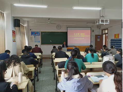 为推进全校党史学习教育的深入开展,4月28日下午14:30,校党史学习教育宣讲团成员、外国语学院党总支书记管志强在1201教室为党员教师讲授了一堂生动的党课——《让井冈山精神放射出新的时代光芒》,外国语学院副院长沈刚、全体党员教师参加了此次党课学习。