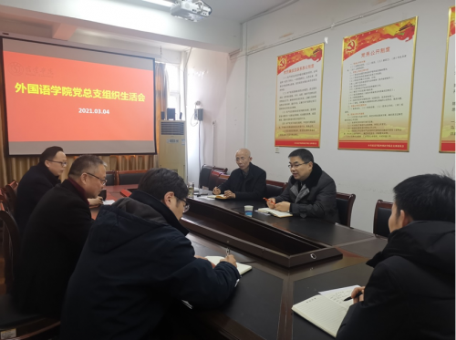 3月4日下午,外国语学院党总支在系部办公楼210会议室召开2020年度组织生活会。校党委常委、副校长潘志明同志出席会议。