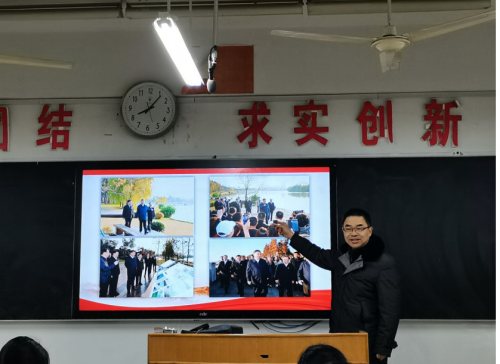 12月7日晚7:30,校党委常委、副校长潘志明在4407教室为2020级英语3班全体同学授课。潘校长以“学习贯彻习近平总书记在江苏考察重要讲话精神”为题,带领同学们重温习近平总书记在江苏考察时的重要讲话,结合高等教育的五大职能和宿迁学院的“三为”办学方针,从文化传承、社会服务和人才培养三个方面,讲述了高校如何深入贯彻落实总书记的讲话精神。潘校长还指出,作为英语专业的学生,要坚定专业选择,要学好、用好英语这个重要的语言工具,更好地为生态文明建设和社会发展做出贡献。