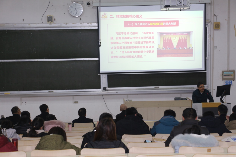 12月2日下午,校党委常委,副校长潘志明赴我院宣讲党的十九届五中全会精神。我院全体院领导、教师参加宣讲会。