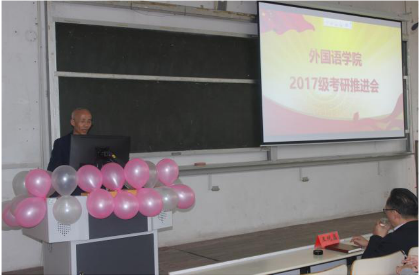 2020年10月14日下午4∶00,外国语学院2017级考研推进会在1号楼一阶教室准时开始。出席本次推进会的有外国语学院于兴亭院长、管志强书记、沈刚副院长、王纯磊副院长、英语系专业主任李长忠教授、2017级辅导员王姗老师以及全体考研同学。