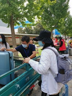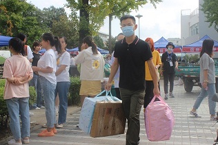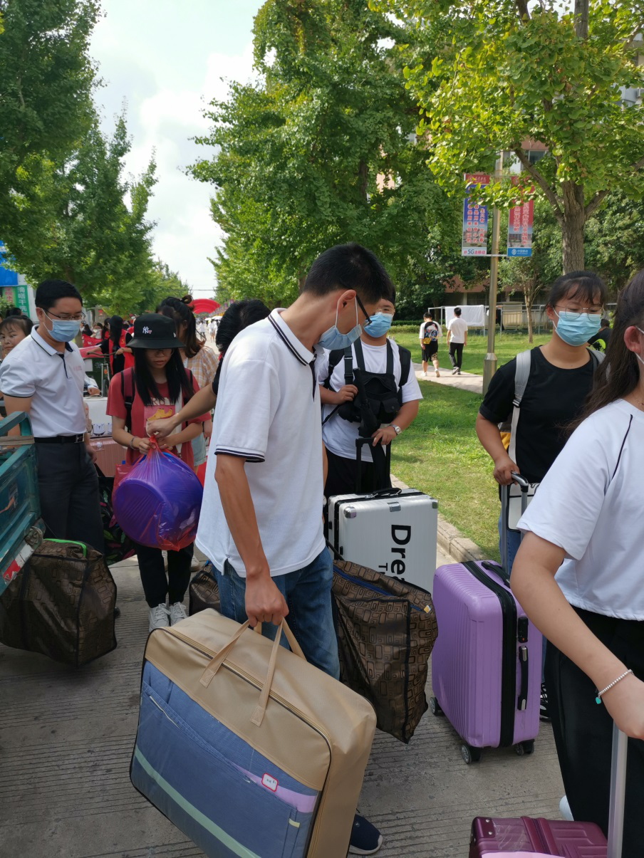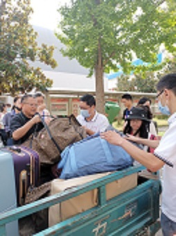 9月13号上午8点,古楚大道旁就早已站满了准备迎接新生的院领导、老师与志愿者们。志愿者们骑着三轮车辛苦地搬运行李,热情地带领新生前往宿舍区,陪伴他们办理各类手续。领导和老师们更是如同家长一般,将同学们行李送至宿舍,解答同学们的疑惑,关心着到来的每一个新面孔。