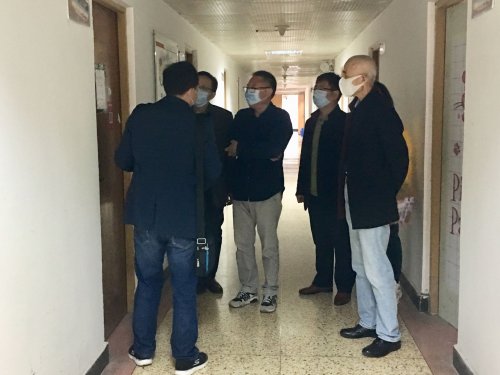 4月29日上午我院院长于兴亭老师、党总支书记管志强老师、副院长沈刚老师及王纯磊老师前往16栋和8栋学生公寓,看望我院2018级同学,了解同学们近期的生活和学习情况,并督促提醒同学们每天按时报自测体温,保持宿舍正常通风,坚持消毒。
