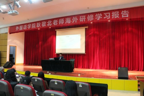 最后,于兴亭院长总结了本次汇报会,他充分肯定了耿老师的汇报,认为报告信息量大,对我校教学科研都有一定的启发作用!同时介绍了我校在对外交流学习、合作办学方面取得新的进展,鼓励外国语学院师生抓住出国研修的机会,更深入地学习异国语言、文化,提升自己,也为学校的发展做出贡献。