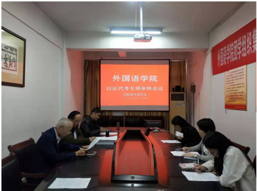10月24日下午,外国语学院教学委员会相关成员参加了以证代考专项审核会议。根据人才培养方案关于以证代考的相关规定,对英语专业、英语师范专业获得TEM-4优秀、BEC中级、CATTI三级、雅思等证书和获得省级以上竞赛奖项的同学以证代考课程给予了审定,同时根据人才培养方案审核确定课程对应的分数。