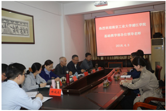 2018年4月3日下午,南京工业大学浦江学院基础部腾加俊主任、大学英语教研室成凤圣主任等一行到外国语学院进行交流学习。外国语学院领导班子成员和大学英语教研室负责人等参加交流活动。