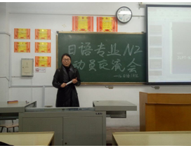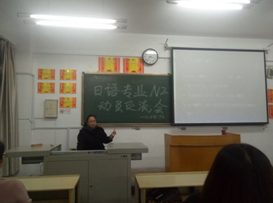 会上,首先由日语系主任刘红艳进行了发言,针对能力考试中比较容易出现的知识点和答题技巧进行了归纳,传授了在备考过程中怎样做题、怎样复习的方法。其次,由辅导员沈姣老师讲话,以自身经历来激励大家,增加了同学们的备考士气。然后由岳菲凡和朱珈吟两位学姐讲了N2和专四的题型、分数分布和通过要求,就她们备考的经验总结要点,岳菲凡学姐用“准备和努力不会背叛你”来告诉同学们要努力学习。最后,由16日语班两位已经通过N2考试的同学交流了一下她们考试的感受和学习日语的方法。