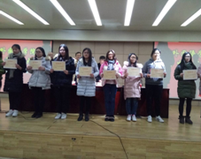 接下来由各位领导老师为受表彰的的集体和个人颁奖,国家奖学金奖项获得者为15英师班谢思雨同学;国家励志奖学金获奖者共有12人;十佳班级获奖者为14商贸(1)班和16英语(3)班;百优班级获奖者为16英语(1)班,16日语(1)班等,各获奖班级代表上台领了奖;三好学生、优秀学生干部、专业奖学金、单项奖学金、奋进标兵和奋进学子等奖项由各班级派代表上台领奖。