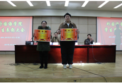 最后由外国语学院院长侯小刚老师讲话。主要阐述了:学校重视人才的培养,寒暑假保持求索楼、宿舍、食堂对学生的开放,希望我们利用好先天优势;外院考研率极高,近四年考研率高达13%超过了整个宿院的考研率,劝诫我们抓住机会;列举"美女学霸",让我们多多了解各大院校考研信息,知己知彼,百战不殆;虽然期中考试已经结束,但是要不断反思自己,制定目标,继续努力;同时我们更需要有中国精神,世界眼光!
