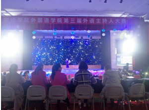 11月18日晚六点半,在大学生活动中心举办了外国语学院第三届外语主持人大赛决赛,出席此次大赛评委嘉宾有副院长沈刚,书记管志强,辅导员沈姣,王姗,杨春燕,以及众多任课老师和外教。