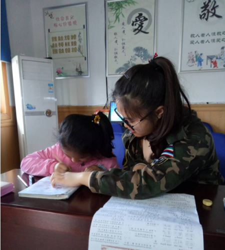 从上个学期开始,团总支每个星期都会有人去永阳社区英语辅导,去了一次之后,她爱上了做志愿活动,因为在那个周六的下午她和小孩子们相处得很好,帮助小孩子们了解到了不会的单词或者句子,感觉自己学英语对别人也很有帮助。