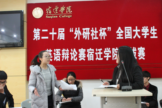 2016年12月11日下午,外国语学院团总支在大学生活动中心三楼团校教室举行了大学生“外研社杯”全国大学生英语辩论赛宿迁学院选拔赛。出席的评委有陈为春老师,袁媛老师和邓平安老师。