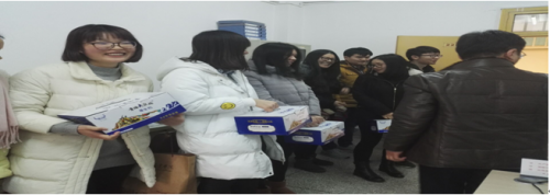 同学们将备考冲刺阶段的学习情况与院领导们进行了一些分享。侯院长、沈院长也就大家关切的一些问题进行了回复。最后,为了改善同学们生活,表达学院的关心,院领导们将提前购置好的一箱箱纯牛奶发放到考研同学们手中。同时,侯院长寄语考研的同学们“最后的胜利往往在于再坚持一下的努力之中”,并以此勉励报考研究生的同学们能够再接再厉,坚持到底。