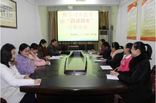 2016年11月23日,外国语学院教工第二党支部在外院会议室举办了“四讲四有”大讨论活动。外国语学院院长侯小刚、党总支书记管志强出席了此次大讨论。