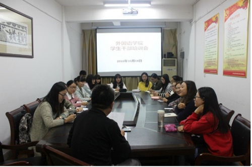 10月18日下午4点,宿迁学院外国语学院党委书记管志强书记带领各学生组织干部召开了外院学生干部会议。