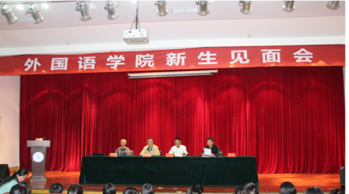 2016年9月28日15时,外国语学院在求索楼举行了新生见面会。出席本次见面会的有外国语学院院长侯小刚、党总支书记管志强、副院长于兴亭、沈刚,以及部分任课教师和全体辅导员。