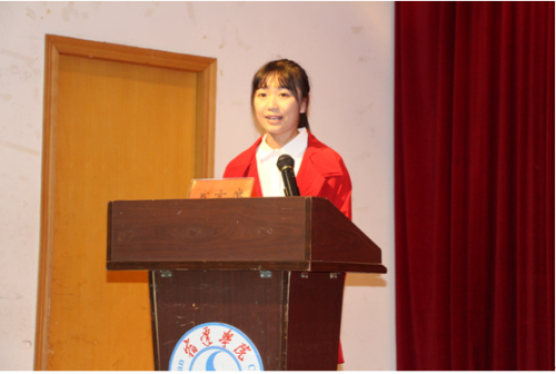 大会第二项议程由新生代表戴群同学进行了发言。首先,她总结了军训的感想,既锻炼了自己的能力,又丰富了自己的阅历。她倡导同学们树立明确目标,常泡图书馆,加入自己喜欢的社团,并在课余时间,勤工俭学,减轻父母的负担。