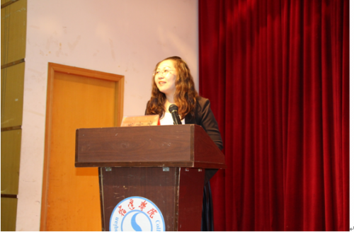 大会第一项议程是外院教师代表杜辉老师发言。她先对同学们的到来表示了热烈的欢迎,紧接着站在同学们的立场上,表达了对于大学的展望。她提议同学们多读书,沉静下来,并倡议同学们树立明确目标,规划一年内的学习生活,主动参加比赛,锻炼能力,报名参加各项考试,了解考试时间。与此同时,她又鼓励同学们将一本书学成一张纸,培养自主学习的能力,提高学习主动性和创造力。更要养成独立思考,主动质疑的习惯,投身于各项科研活动。最后,她诚挚希望同学们敞开心怀,包容他人,互助有爱,成为一个诚实,有趣,有责任,热爱专业的大学生。