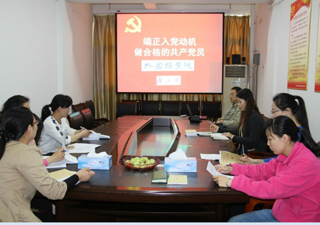 作为教工二支部的一位老党员,外国语学院院长侯小刚同志给大家上了一堂题为“端正学习动机、做合格的共产党员”的党课,党课围绕“每位党员都应该扪心自问:自己的入党动机是否正确?如何端正自己正确的入党动机?” 等问题徐徐展开。侯院长的党课丝毫没有枯燥的说教内容,党课素材信息非常丰富,党课内容呈现非常生动,理论联系实际非常到位。随着PPT课件的播放,中国共产党艰苦的发展历史娓娓道来,图文并茂,方法灵活,给在座的党员教师示范了一堂精彩的党员党性修身课。侯院长最后还给大家留了思考题:1、我的入党动机正确吗?2、我应该怎样端正入党动机?怎样提高党性修养?3、作为一个普通党员,怎样将本职工作与实现中国梦的事业结合起来?4、马克思主义中国化的最新成果是什么?5、马克思主义中国化过程对我们思想(学习、工作、研究)方法有何启发?