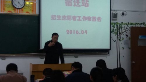 4月27日下午17:15,宿迁站招生志愿者工作布置会在1302教室如期召开。宿迁站侯小刚站长、管志强副站长以及全站成员参加了会议。