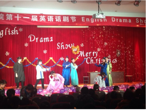 英语话剧节历经了11年时间,已经成为外国语学院一档大学生品牌活动,并成为英语专业学生及非英语专业进行英语实践的重要舞台,是一道亮丽的风景线。在这里,中西文化进行了交汇,古典与现代擦出了火花。在这个欢悦的圣诞节,共有七部精彩的话剧呈现给我们。在表演之前,艺舞堂的开场舞给今晚做了热身准备。第一部是喜羊羊灰太狼,用生动可爱的表演赢得了全场的掌声与欢笑。而接下来的是我们熟知的经典喜剧唐伯虎点秋香,被英师的新生们表现得惟妙惟肖。奔放的拉丁舞再次惊艳了全场,也点燃了比赛的气氛。第三组的话剧是我们的记忆,也是每个女生的梦想---灰姑娘,大三的同学们表演落落大方,音乐服装十分到位,再次带我们走进了童话世界。而接下来的现代剧夏洛特烦恼则用丰富的人物台词,分镜头等创意赢得好评。日语版的武林外传让我们领教了学日语专业学生精湛的日语,剧中巧妙千手观音等舞蹈更是锦上添花。在最后,两部中外经典巨作,莎翁的四大悲剧之一李尔王与红楼梦,分别演绎了最精彩的部分,被遗弃的李尔王与最善良的小女儿的演绎与独白深情并茂,展现了实力。刘姥姥三进大观园则是大家熟悉的桥段,但商英专业同学们的表演丝丝入扣,专注细节,让我们再次回顾了这部经典。一次又一次的表演,是需要同学们不断润色改进排练才能在今天呈现精彩。