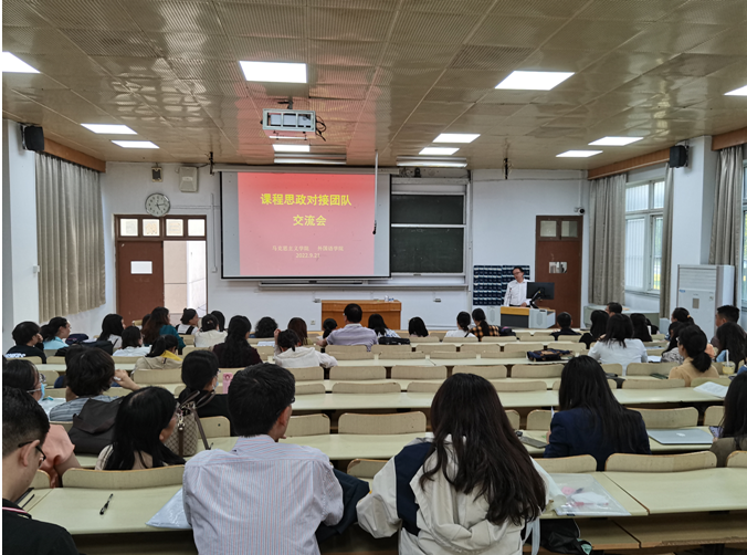 9月21日下午四点,为了更好的帮助老师将课程思政元素融入英语课程的各个环节,外国语学院和马克思主义学院在一号楼第三阶梯教室召开课程思政对接团队交流会。