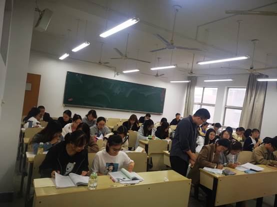 10月3日上午第一节课,校长潘志明深入外院新入职教师刘文斌课堂听课。