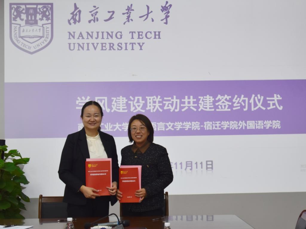 会上,南京工业大学外国语言文学学院党委书记张翔介绍学院、学科情况,副书记高洁、宿迁学院外国语学院党委副书记王倩分别围绕学风建设、辅导员工作室、考研与就业、生涯教育工作室等做详细介绍。双方工作人员结合辅导员队伍和外语类学生管理特点,就学风关键性指标共进、第二课堂资讯共享、学生班团共建、考研就业资源共建等方面达成结对共建意向,共同签订了《学风建设联动共建协议书》。