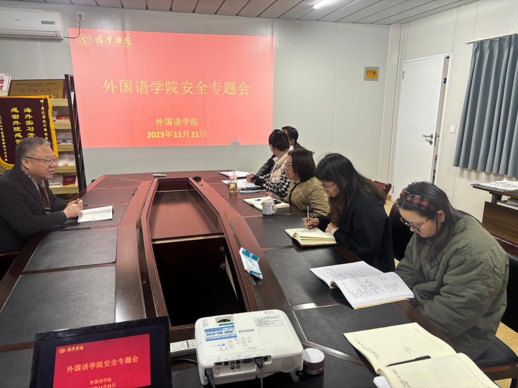 11月21日,外国语学院召开安全工作专题会议,学院安全工作小组成员参会,会议由党委书记管志强主持。