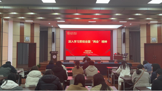 3月27日,学院召开教职工大会,传达了2024年全国两会精神。学院党委领导班子和全体教职工参会,会议由党委副书记王倩主持。