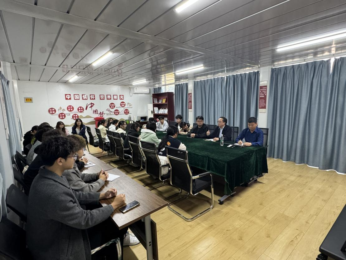 2024年11月1日下午,外国语学院一楼会议室举行了一场别具一格的跨学科专业文献阅读会。宿舍导师学院院长王纯磊、卫晓旭博士和他们结对的4个宿舍的2024级24名学生参加。