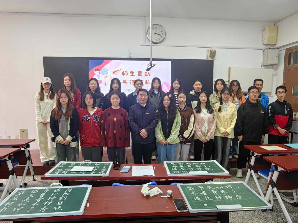汇报结束后,22英师3班和乐道师友社的同学们现场进行了师范生技能粉笔字展示,施正荣现场与学生互动,交流了写字心得。他向在场的同学们送上了“十个一”的寄语:即淬炼一身好品行、练就一副好身体、涵养一个好心态、养成一种好习惯、取得一个好成绩、结交一群好朋友、找到一份好工作、拼搏一份好前程、谈到一个好对象、拥有一个好生活。这些寄语充满了对同学们的关爱和期望,也为大家指明了今后成长道路上奋斗的方向。
