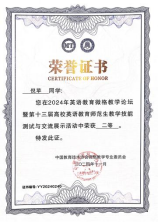 11月15日至18日,由中国教育技术协会微格教学专业委员会主办的“2024年英语教育微格教学论坛暨第十三届高校英语教育师范生教学技能测试与交流展示活动”在黄冈师范学院圆满落幕。我校英语(师范)专业江欣璐、倪萍和张子颜三位同学在激烈的竞争中脱颖而出,均喜获二等奖的佳绩。