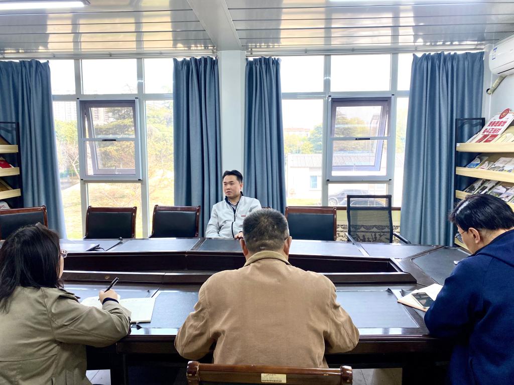 调研会上,学院党委书记管志强围绕学院2025届毕业生就业工作推进情况作了详细汇报。他详细介绍了当前毕业生就业进展、重点难点及学院采取的举措,包括考研复试调剂、就业指导服务、分类建立就业台账等。