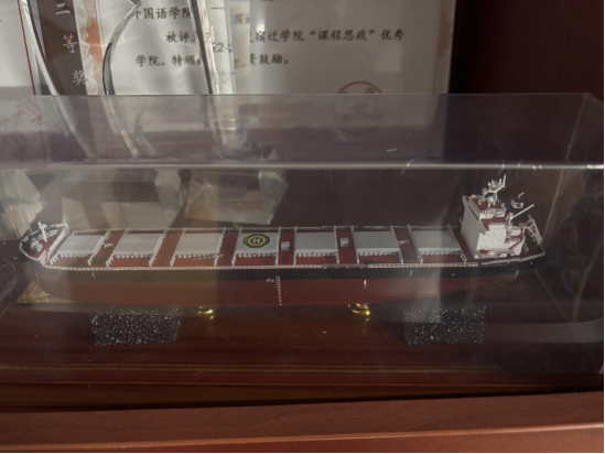 会后,黄显德代表上海秀美模型有限公司向外国语学院赠送了国际邮轮模型。