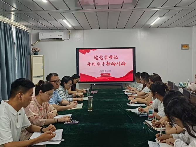 为加强院党委对团学工作的指导,推进学生干部队伍建设,6月11日下午,学院8108会议室举行团学干部座谈会。外国语学院党委副书记(主持工作)张见、副书记王倩、各学生组织指导老师及团学干部参会。