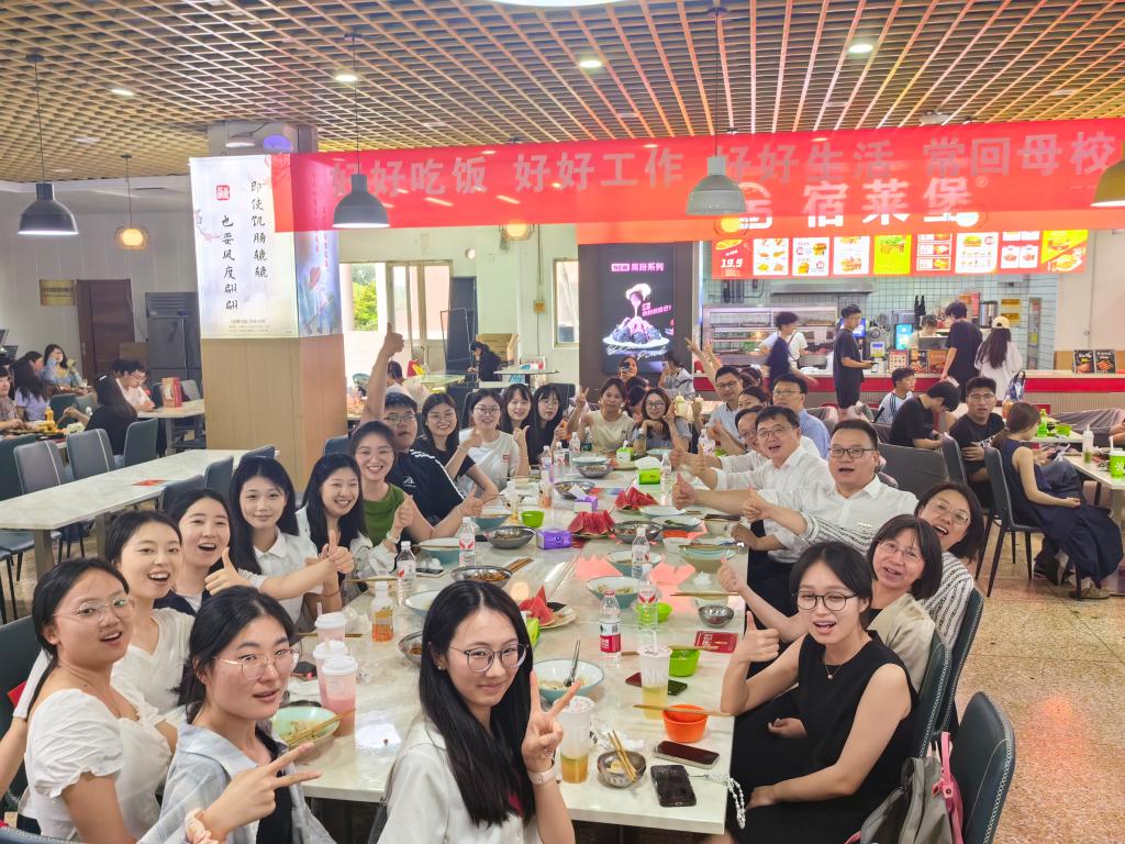 6月19日中午,外国语学院2025届毕业生记忆餐活动在第四学生餐厅隆重举行。宿迁学院副校长章程、外国语学院院长王纯磊、党委副书记(主持工作)张见、党委副书记王倩、副院长王善江、詹慧芳、各系主任和辅导员与2021级毕业生代表一起用餐。水饺、汤圆、面条寓意着顺顺利利、常来常往、圆圆满满。餐桌周围气氛布置充满温情,挂上了“好好吃饭,好好工作,好好生活,常回母校看看”横幅。
