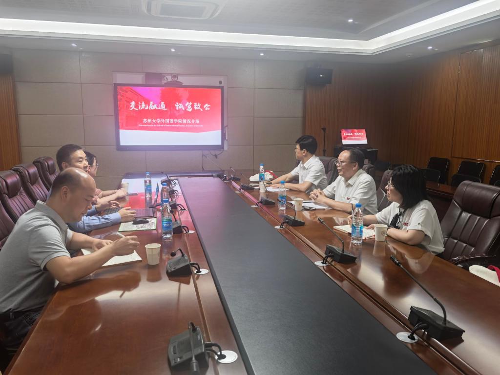 8月22日上午,学院院长王纯磊,党委副书记王倩,副院长王善江一行赴苏州大学外国语学院进行交流学习。苏州大学外国语学院院长孟祥春,副院长石晓菲,副书记、副院长舒洪灶参加交流。
