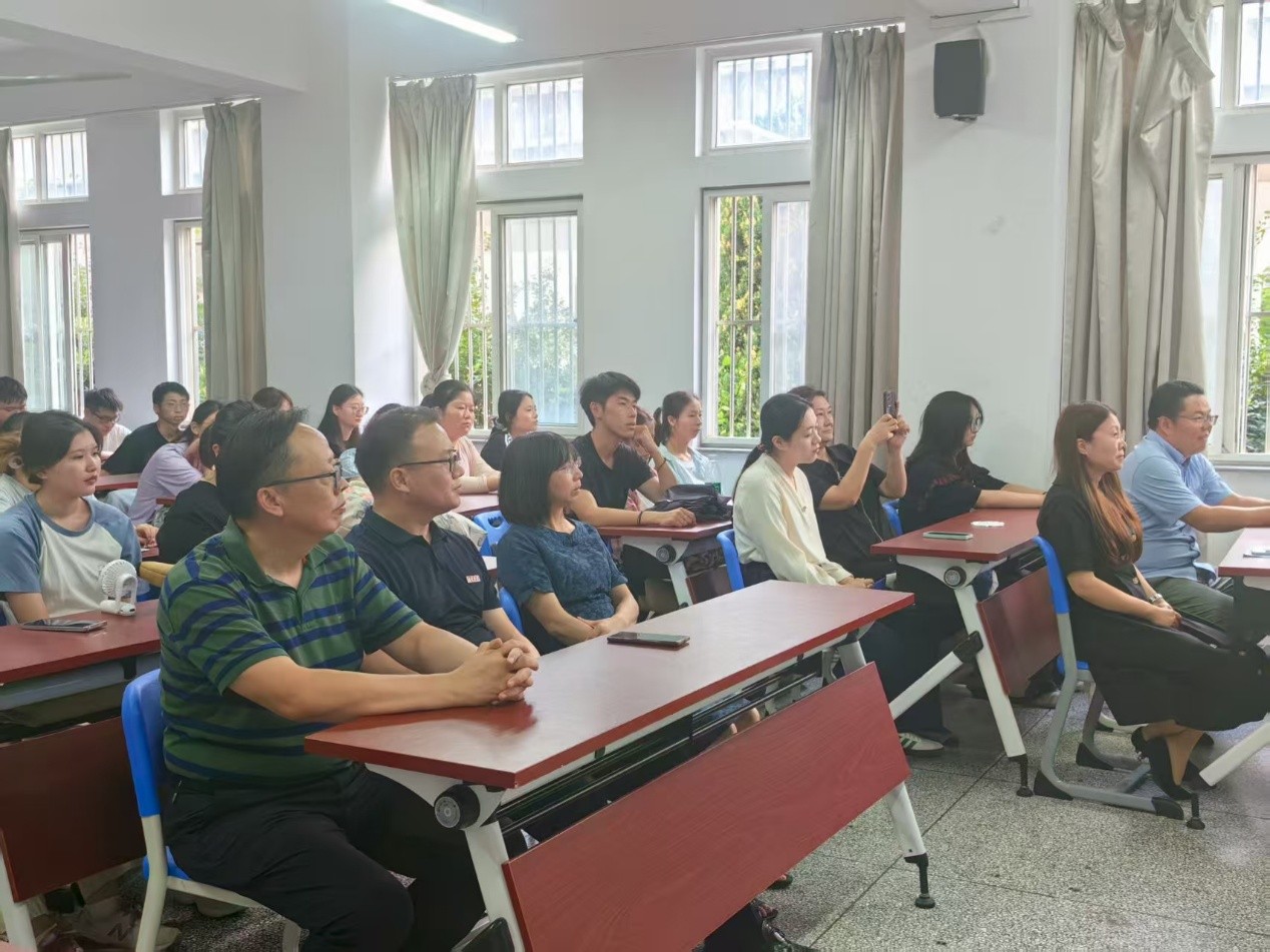 刘红艳就学科建设、师资力量、学术成就等方面展开介绍。她送给同学们"归零前行,厚积薄发"八字寄语,鼓励大家以空杯心态面对新的学习阶段,不被过往成就所束缚,同时注重日常积累,踏实耕耘,相信经过时间的沉淀,终将迎来绽放的时刻。